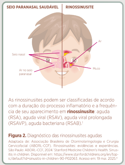 - A hipótese diagnóstica de rinossinusite aguda viral prolongada (RSAVP) é baseada na anamnese e exame físico e sem a necessidade de exames complementares inicialmente.¹ ⁸ (Figura 2)