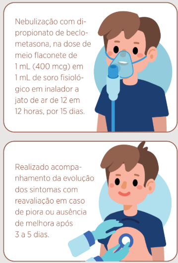 Antitérmico, se necessário, para alívio dos sintomas. Limpeza nasal com dispositivo de baixo volume frequente.
